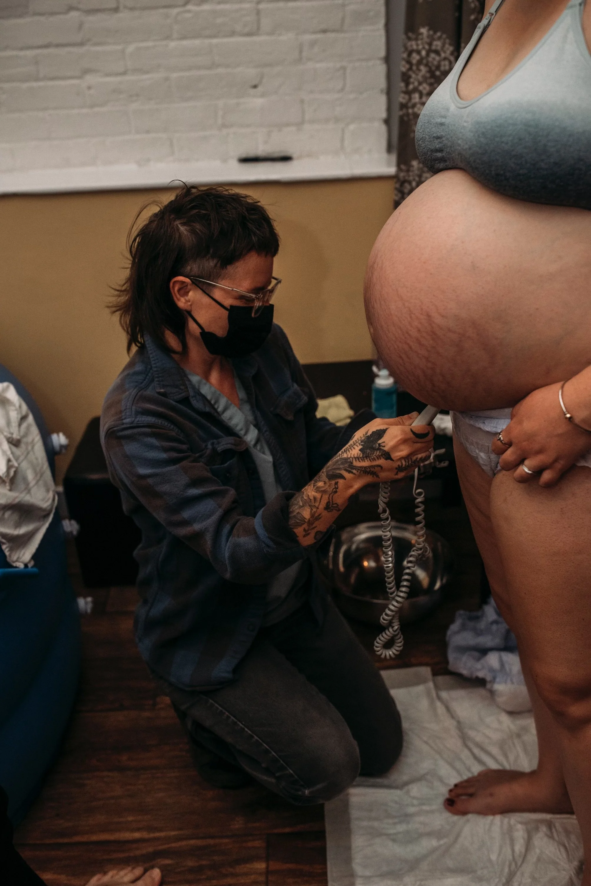 Hour-long appointments (in-person or virtually) with pregnancy assessments, fetal heart times, evidence-based information, support with decision making, birth planning, and more. 6 prenatal appointments, 2 per trimester, and as needed, including on-call text and phone availability.